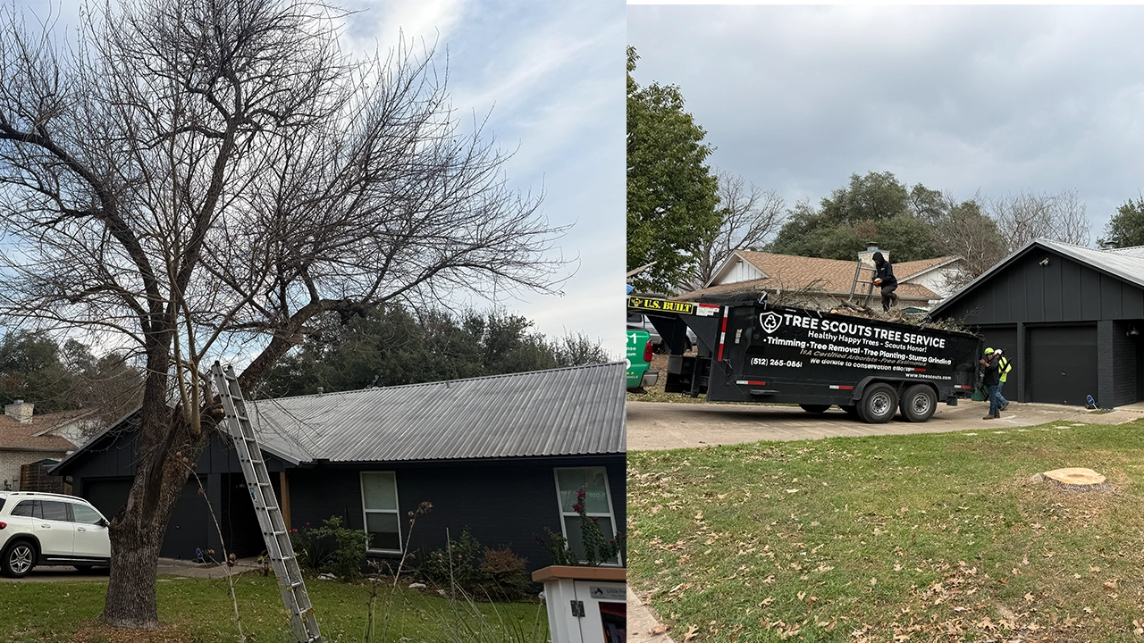 See the difference professional tree care makes. These side-by-side comparisons show real results from recent jobs across Central Texas.
